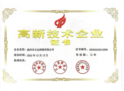 揚州市立達樹脂有限公司(江蘇立潤達新材料科技有限公司)建于1993年,座落在風景秀麗人杰地靈的歷史文化名城揚州北郊省級高新區內,屬國家高新技術企業。